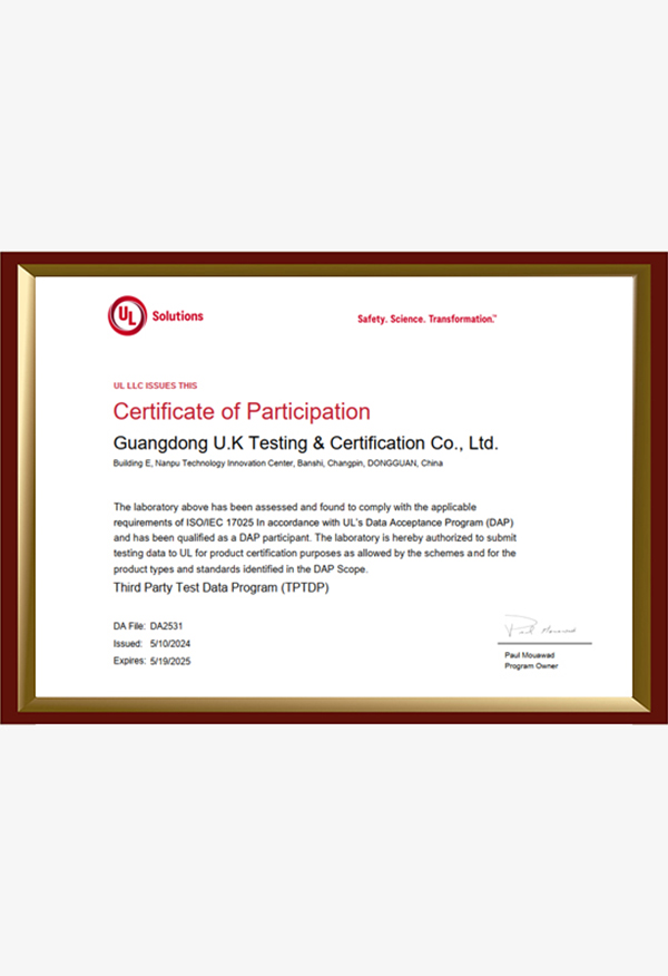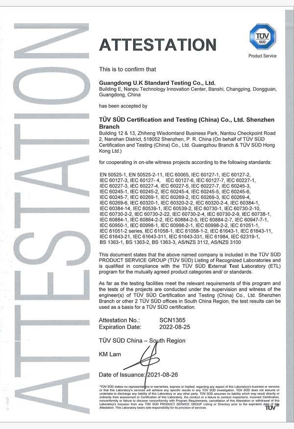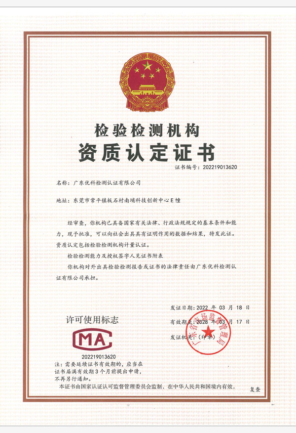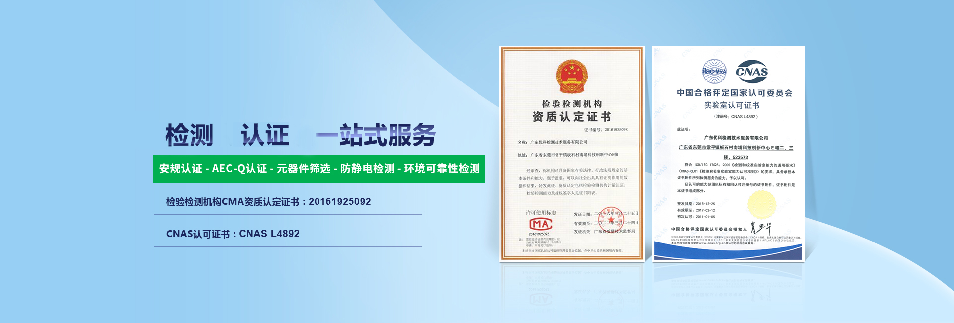 廣東優(yōu)科檢測認證有限公司(簡稱:UKK)成?于2007年,是國內專業的汽車整車及零部件、電子元器件第三方檢測實驗室,國家級中小企業公共(技術)服務示范平臺,獲得了國家?新技術企業、廣東省專精特新中小企業、市級工程技術研發(fā)中心等榮譽稱號。 More